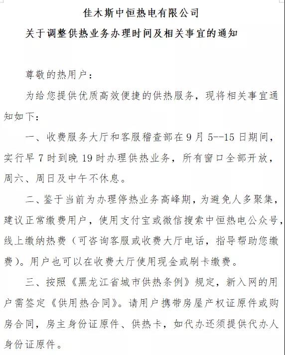 佳木斯供熱繳費(fèi)通知(含威立雅、中恒、華電)